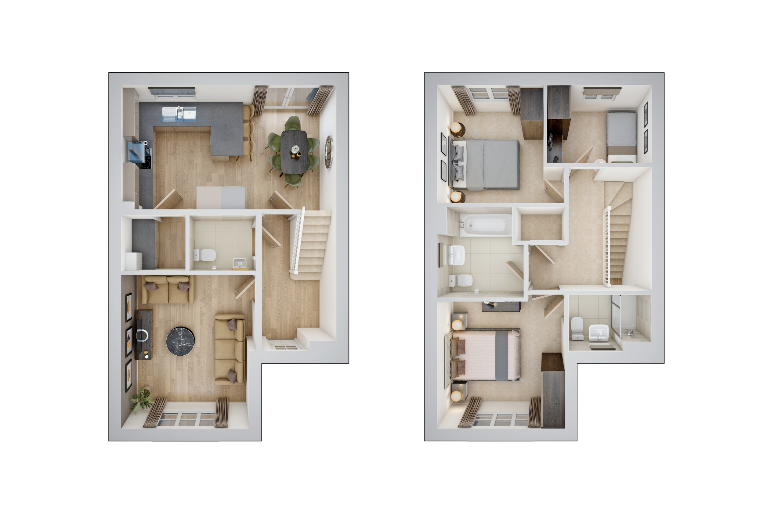 The Laurel features a modern front-aspect living room and a convenient downstairs WC. A dedicated utility room provides access to the kitchen, which flows into an open-plan dining area with French doors leading to the rear garden. Upstairs, two double bedrooms include one with a private en-suite, while a generous single bedroom is served by a large contemporary family bathroom. A spacious L-shaped landing adds to the home’s airy and functional design. This home features a single garage and two parking spaces. Available with our Deposit Match scheme – we’ll double a gifted 5% deposit from family or friends to give you 10%! Access better mortgage rates, reduce your monthly payments, and get moving sooner.