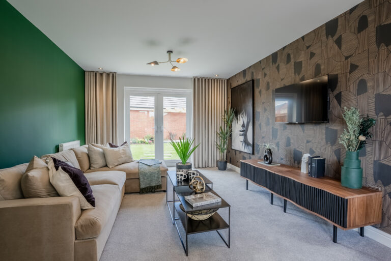 A beautiful four bedroom detached family home, The Raithby offers the ultimate in open plan living. The front entrance hall is light and airy and leads off to a large living room with French doors leading outside at the rear.