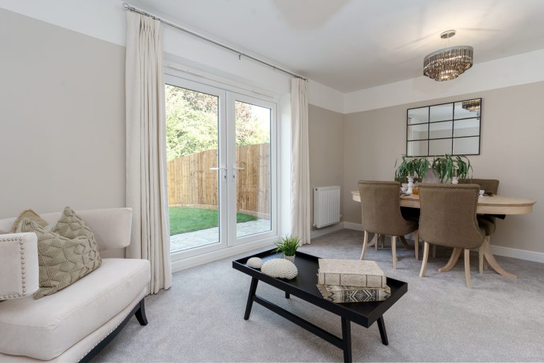 The ground floor welcomes you with a generous entrance hall featuring a WC and understairs storage. Opening directly into a bright open-plan living room and dining space which leads to the rear garden via French doors. At the front of the home you’ll find a modern U-shaped kitchen. Upstairs, the Apple boasts a contemporary family bathroom, two double bedrooms and a generous single bedroom – ideal to use as a nursery or flexible work from home space.