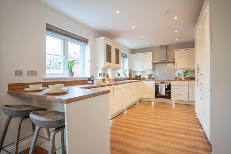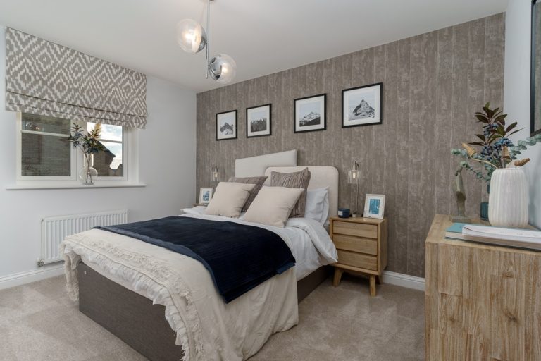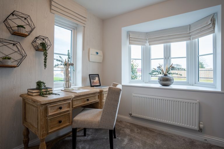 Enter a generous hallway leading to a private study area with bay window, downstairs WC, and separate living room also featuring a bay window. At the back of the property, you’ll find a modern open-plan kitchen/dining space, French doors leading to the rear garden, and a dedicated utility room with outside access. Upstairs the Redbourne features a large primary bedroom with double fitted wardrobes, additional storage space and an en-suite shower room. A contemporary family bathroom serves an additional double bedroom and two single bedrooms.
