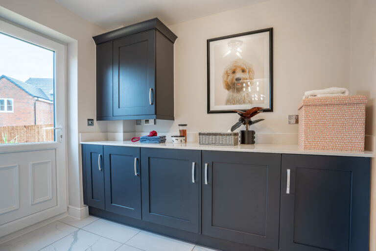 Ideal for growing families, The Ancaster is a four bedroom detached house. A large living room occupies one side of the property, with French doors leading outside. A spacious kitchen and dining area is separated by a useful breakfast bar, perfect for informal family meals. A good sized utility room leading to an extra store room provides additional downstairs space.