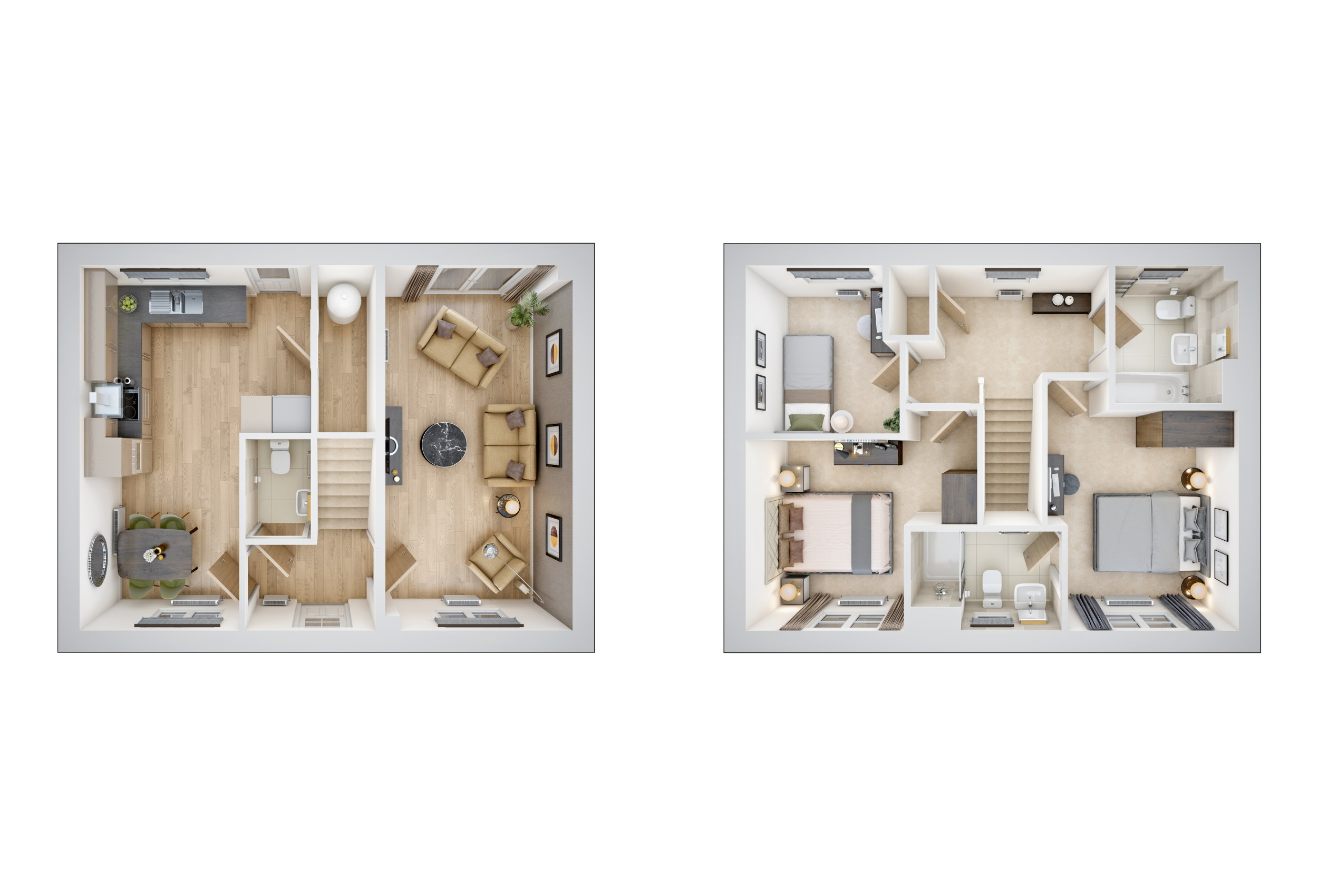 The Luccombe, set on a desirable corner plot, combines thoughtful design and practicality, featuring a dual-aspect kitchen/dining room and a spacious lounge, both stretching from front to back and opening onto the rear garden. A convenient cloakroom and generously sized storage cupboard are located off the kitchen/diner. Upstairs, a large landing provides access to two double bedrooms, including bedroom one with its own en suite, a versatile single bedroom, a contemporary family bathroom, and an additional storage cupboard. This home also benefits from two parking spaces.