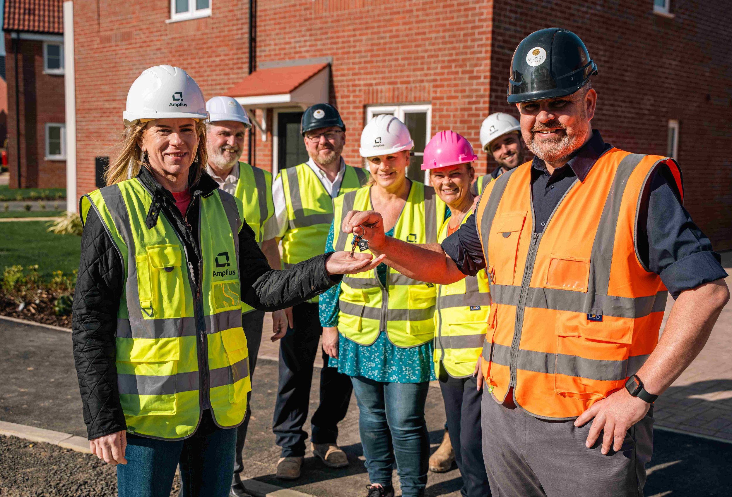 The milestone was marked with an official handover and site tour attended by representatives from both organisations, including  Catherine Lewis, Project Manager for Amplius; Sarah O’Brien, Development Manager at Amplius; Emile Pleasance, Managing Clerk of Works at Amplius; and Patrick Bradley, Site Manager; Ian Trayford, Partnership Quality Manager; Kevin Mowbray, Project Manager; and Faye Meadows, Customer Experience Manager, all from Allison Homes.