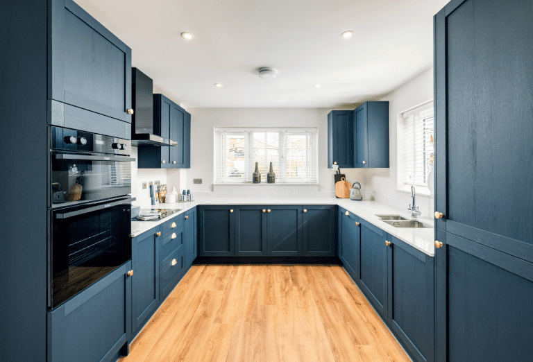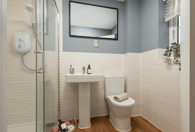 The Gosford offers generous open-plan living and a smart, family-friendly layout. An enclosed entrance hall leads to a stylish front-aspect galley kitchen with a connected dining space. At the rear, the spacious living area opens onto the garden via French doors, creating a bright and sociable space. Practical touches include a downstairs WC and handy under-stairs storage. Upstairs, a large L-shaped landing connects three well-sized bedrooms, including a main bedroom with a private en-suite, while a sleek family bathroom serves the remaining two. This home also benefits from two parking spaces.