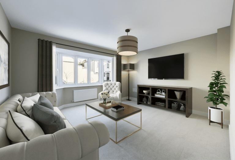 • > Dual aspect living room with feature bay window
