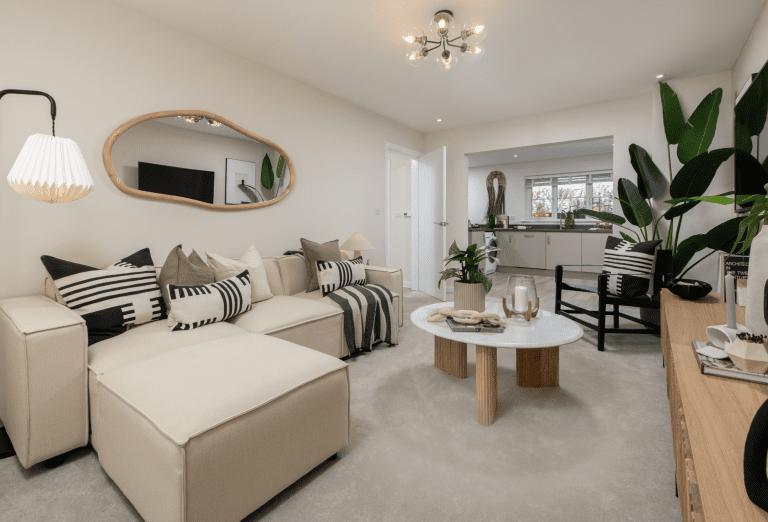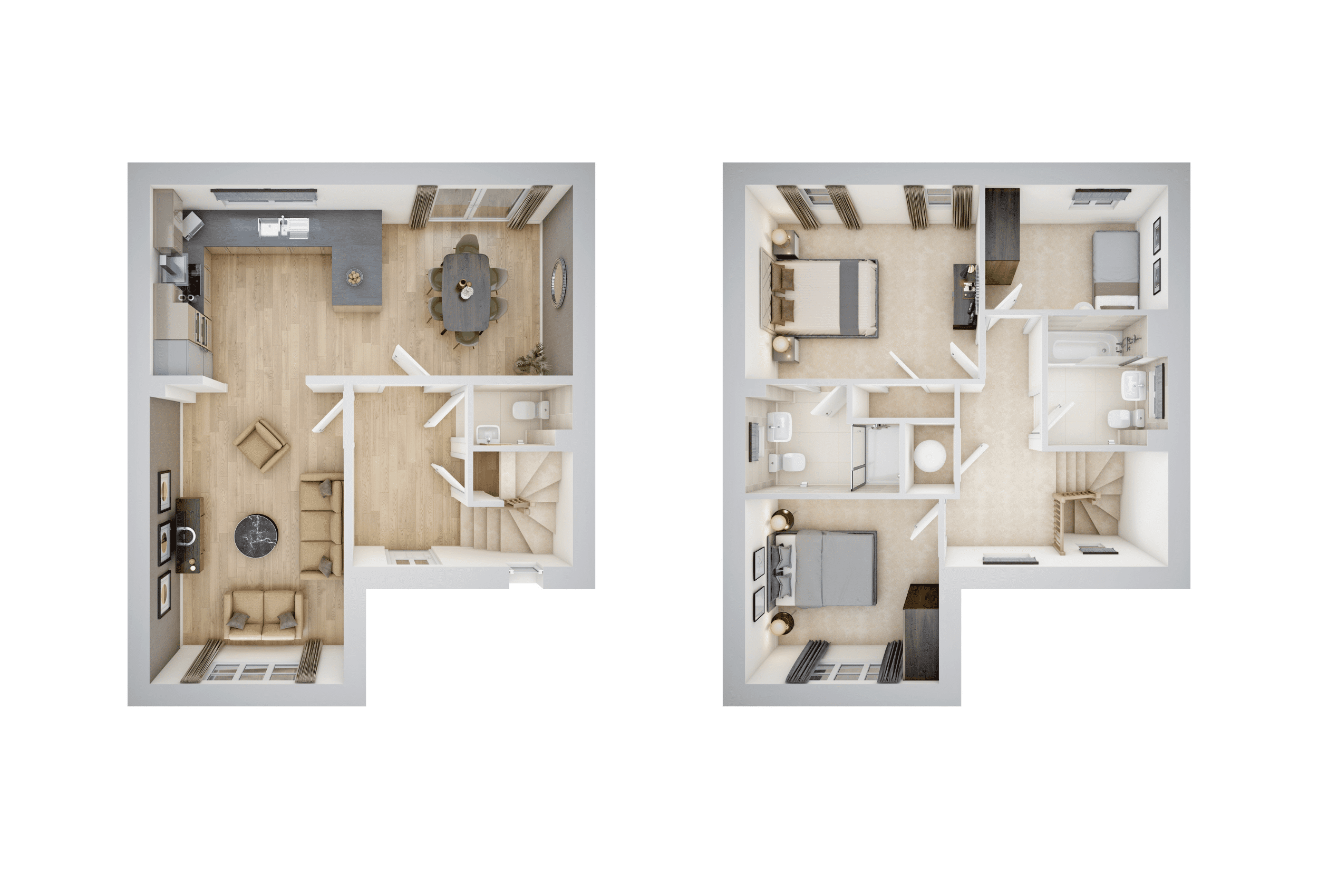 Step into the Hazel and discover a welcoming entrance hallway, complete with a WC and handy storage space. At the heart of the home is a stylish open-plan kitchen and dining area, with French doors that open out to a private south-facing garden – perfect for relaxing or entertaining. The layout flows seamlessly into a bright and spacious front-aspect living room, bathed in natural light. Upstairs, you’ll find two generously sized double bedrooms, including an en-suite to the main bedroom, along with a versatile single bedroom and a sleek, modern family bathroom. This home also benefits from a single garage and two parking spaces.